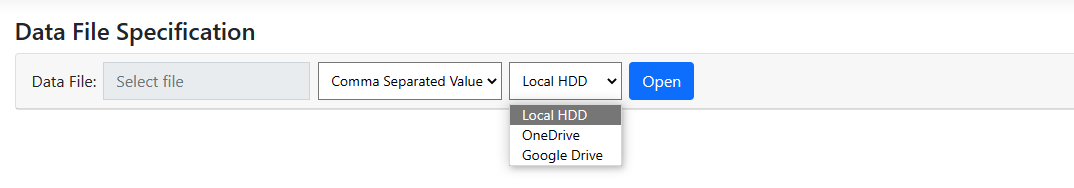 Click on Select file to open an Open dialog box to select a data file.