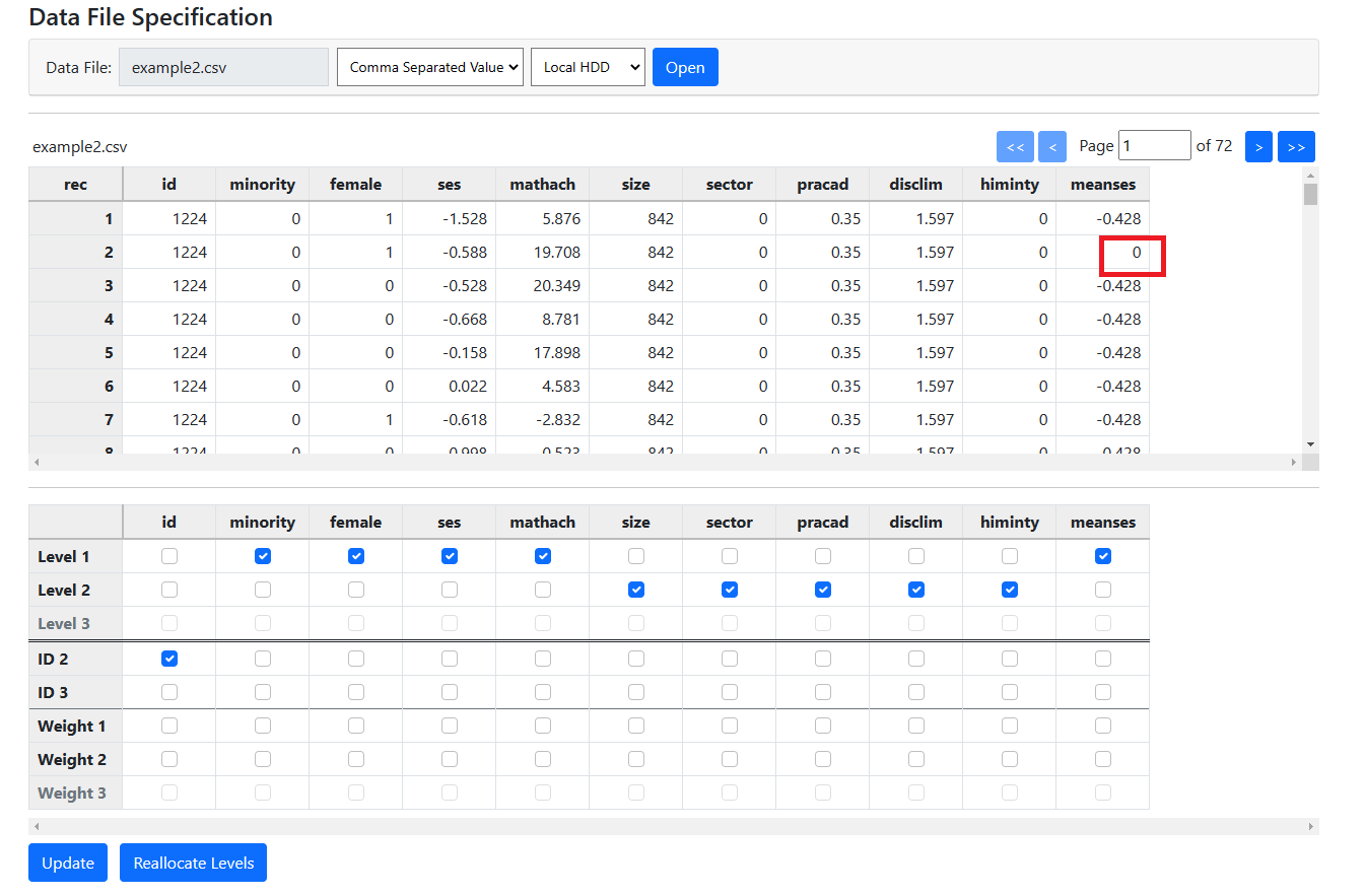 the weighting variable’s column. Note that for an HLM model, up to three