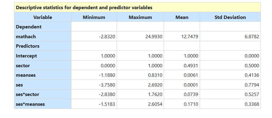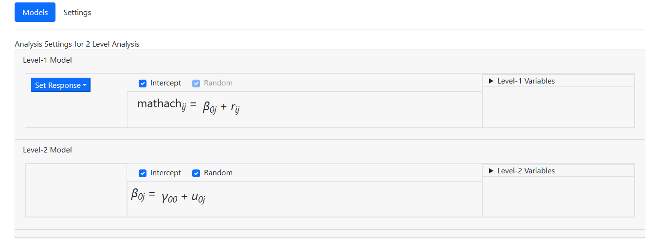 outcome variable and we wish to fit a standard 2-level HLM model. The program