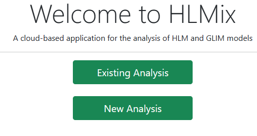 Clicking New Analysis on the landing page, which will take you to the Data page.