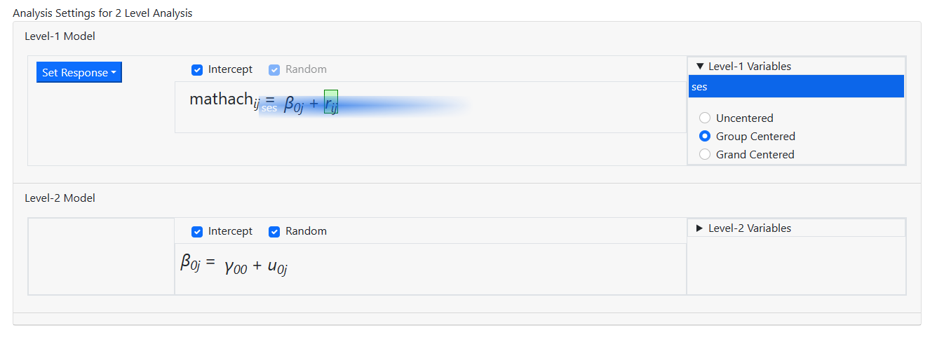 would like to include the level-1 predictor SES. Moreover, we would like to