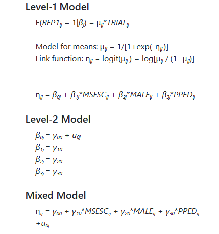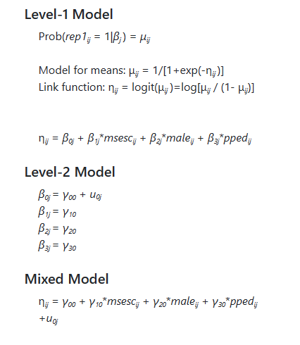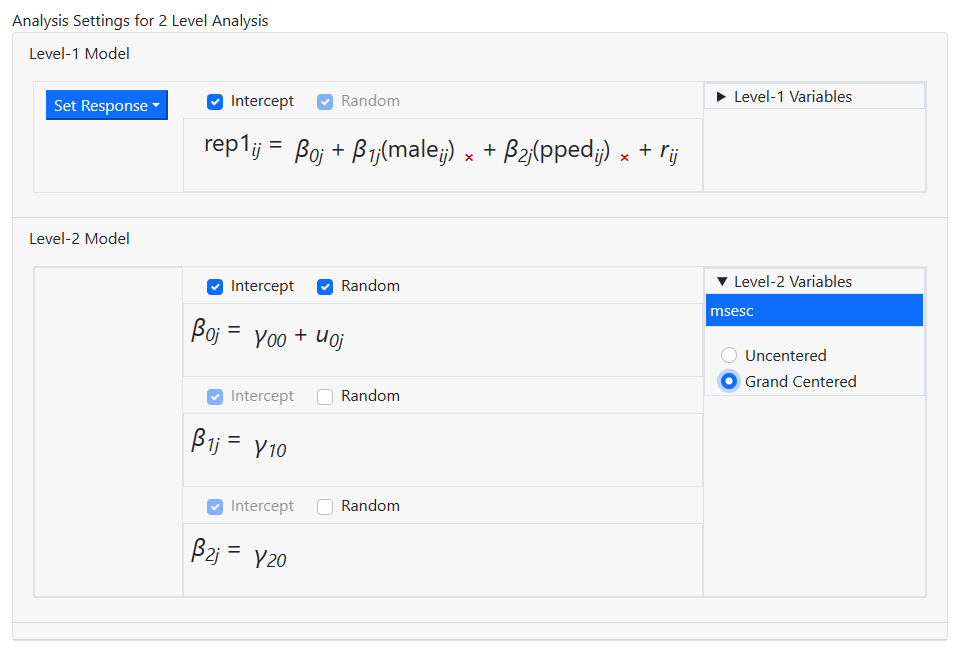level-1, we want to include the predictors MALE and PPED as uncentered