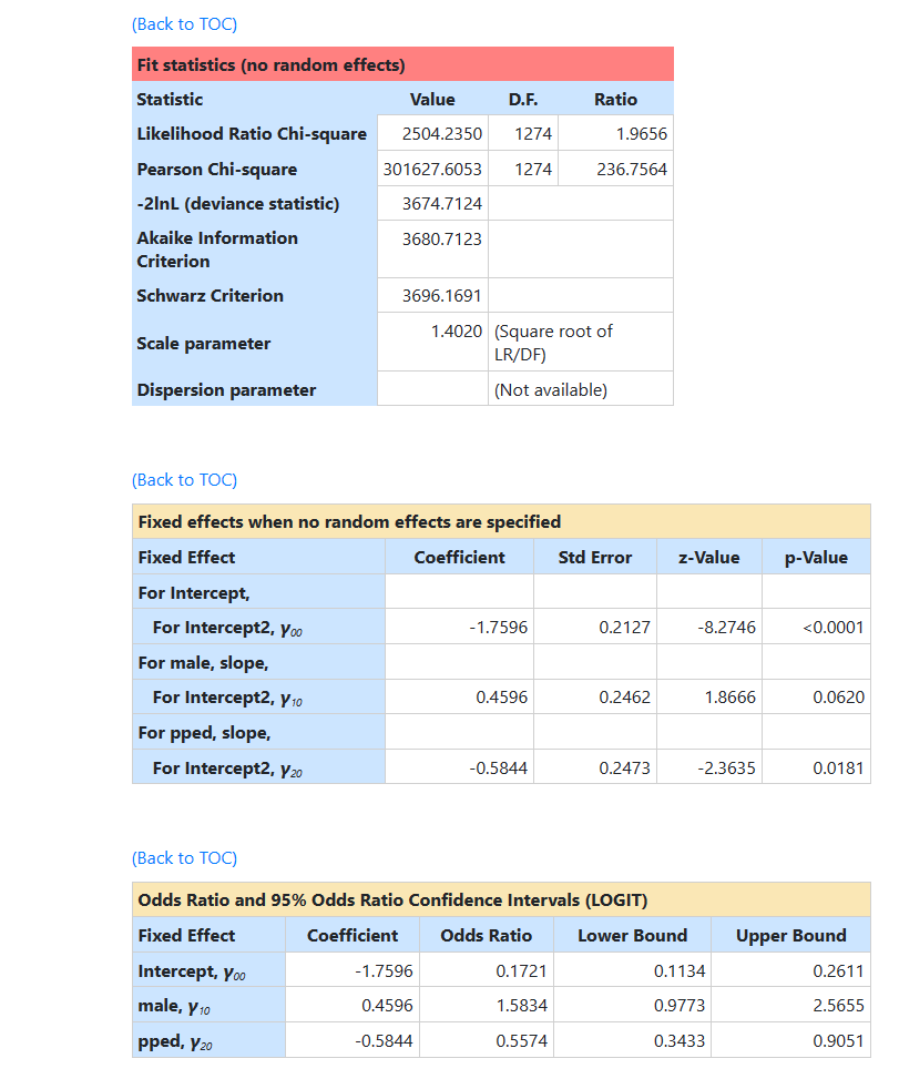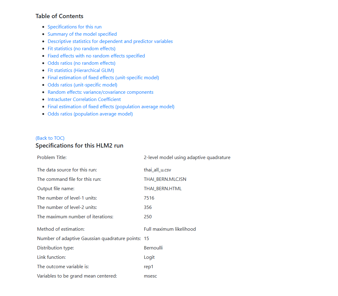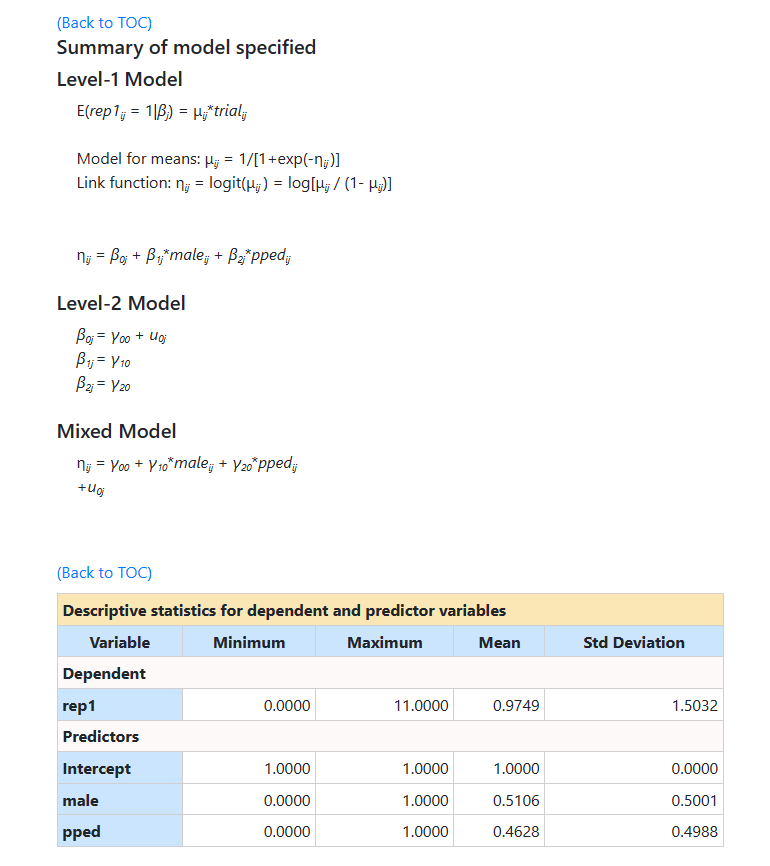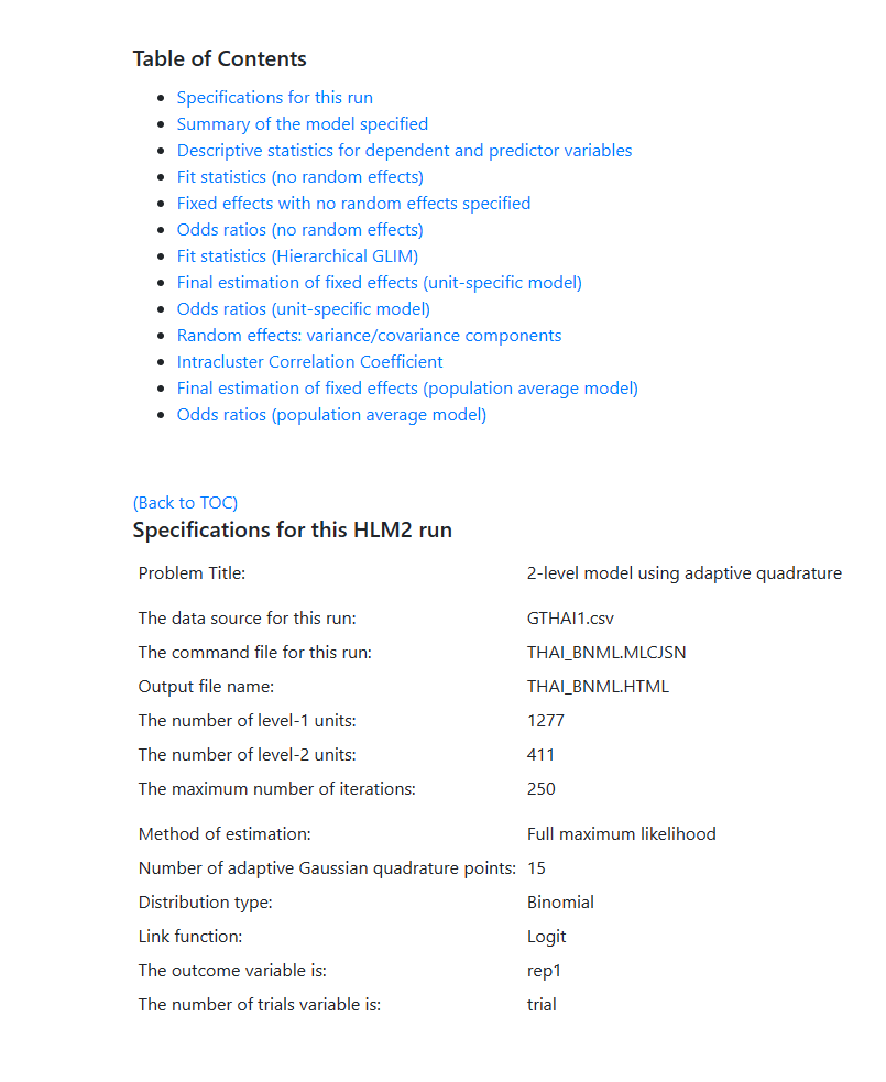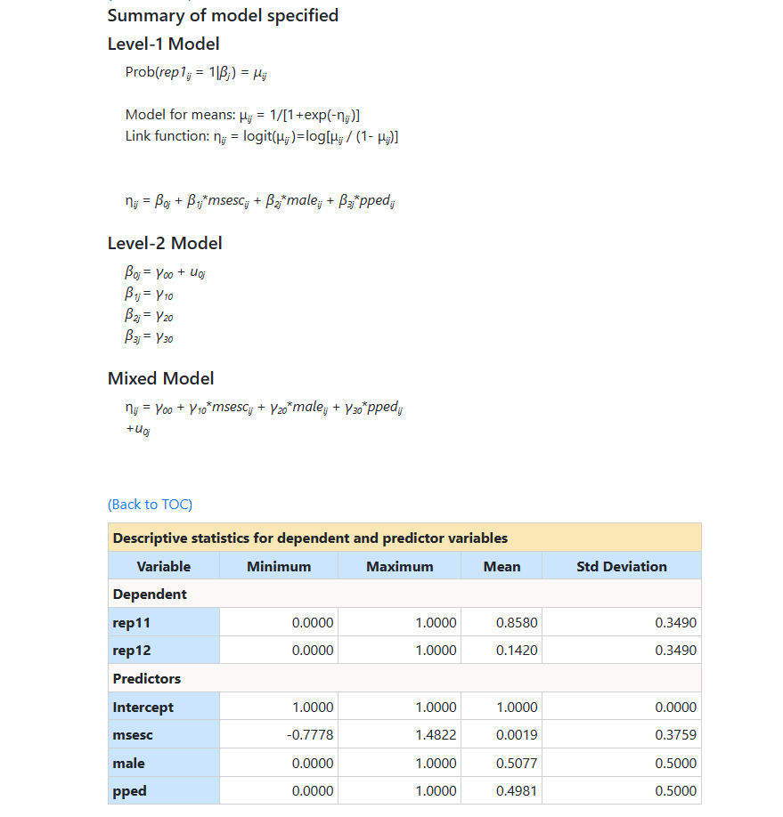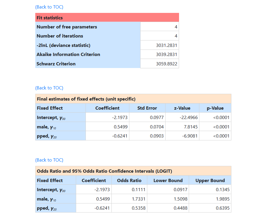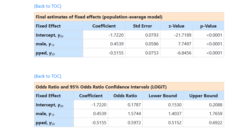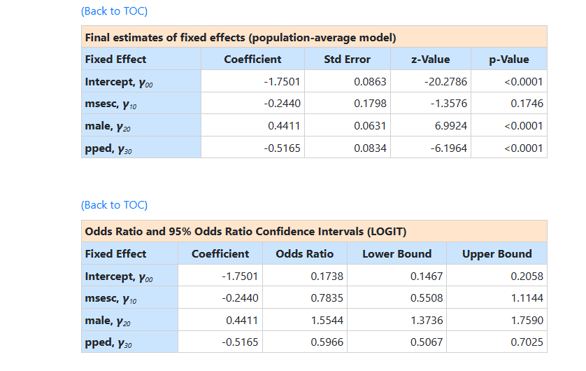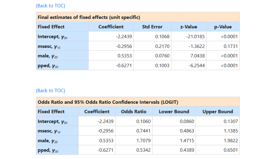 Information on the variance components is given next. The intracluster correlation coefficient is also