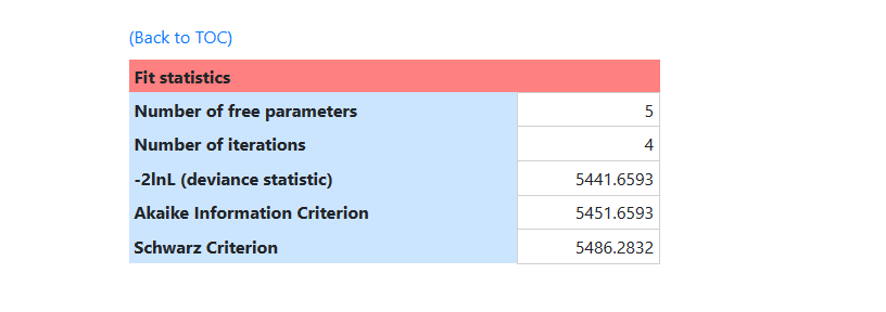 The fit statistics at convergence follows, followed by the final unit specific results.