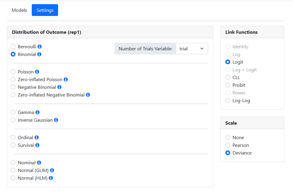 set the Number of Trials Variable by selecting the variable TRIAL from
