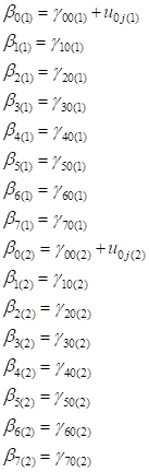 follow-up TIME3 = 1 and TIME1 = TIME2 = 0. With this coding scheme, the baseline serves as the reference
