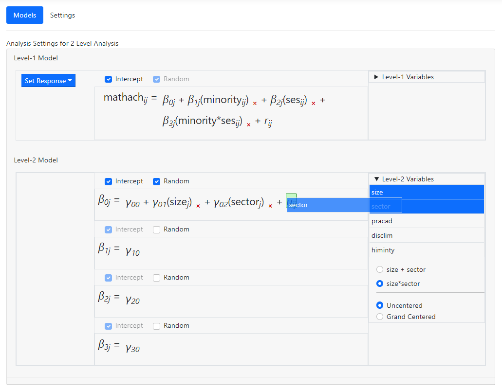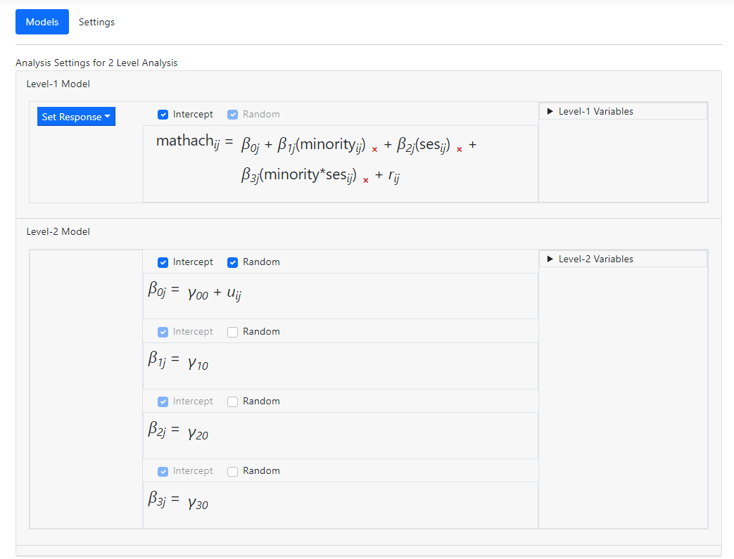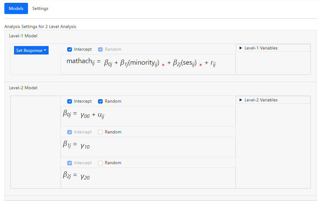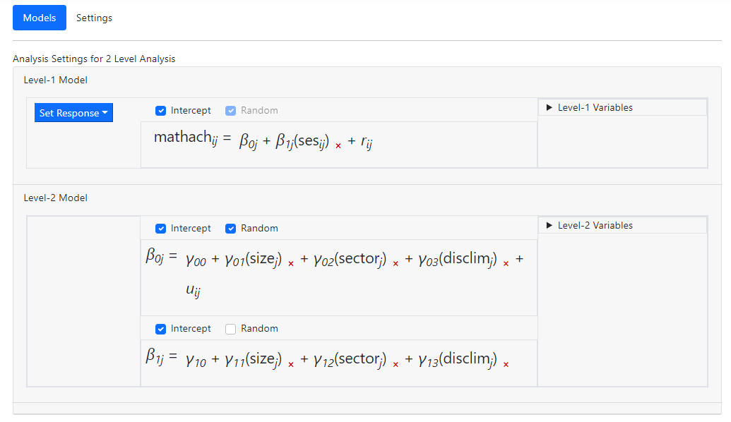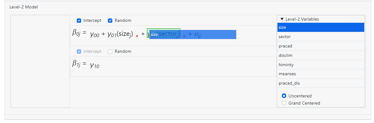 Although the same level-2 variables appear on the two level-2 equations, those on the equation