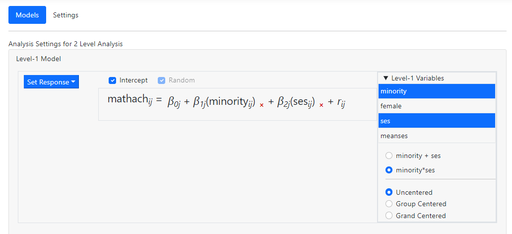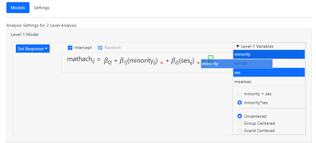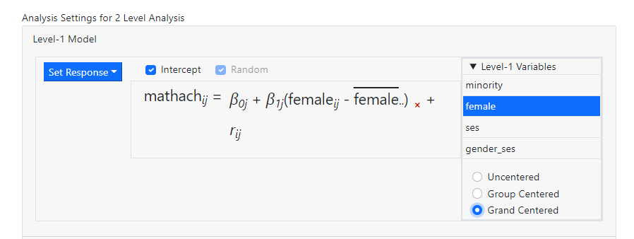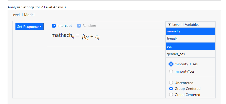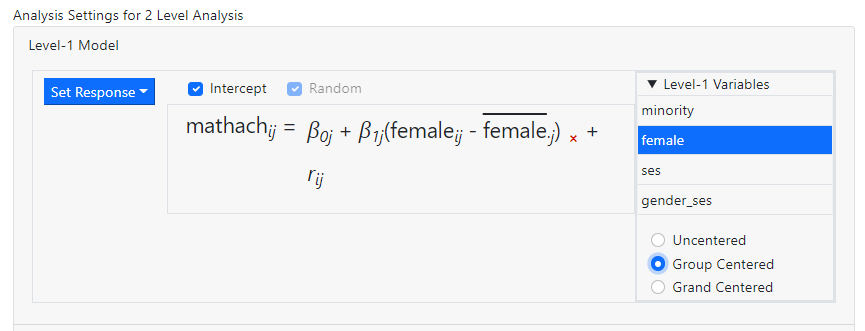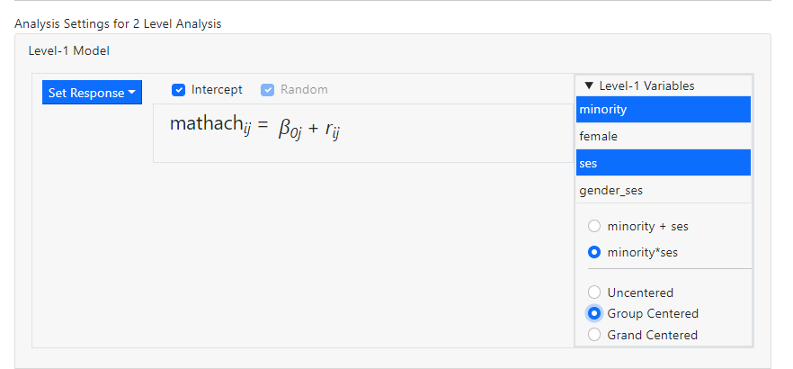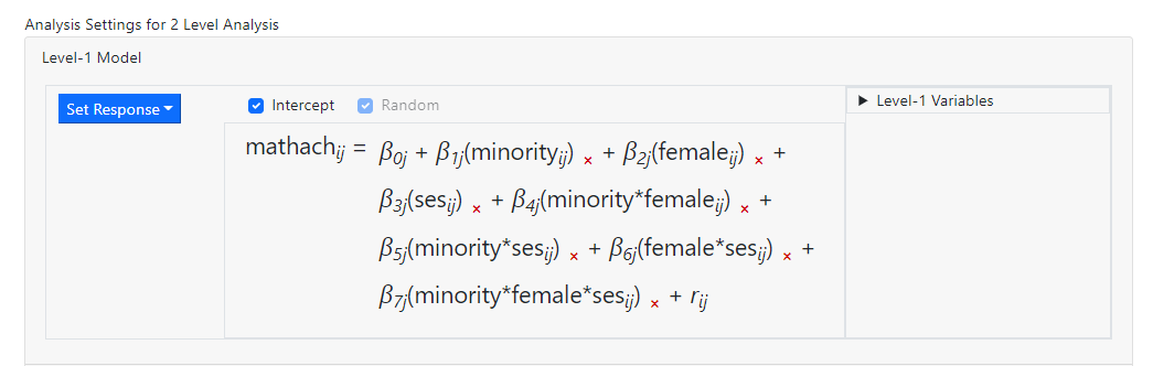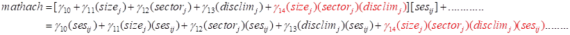 multiplied with the values of the level-1 predictor SES. This implies that for