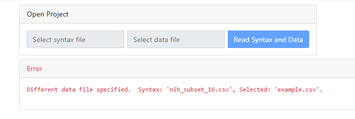 syntax and data file for a previous analysis, a mismatch between syntax and