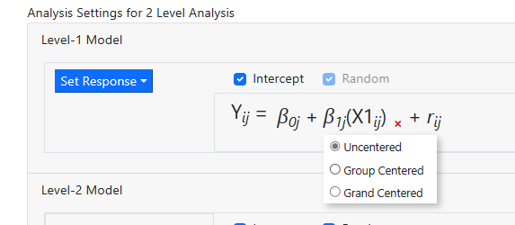 ways (uncentered, group mean centered or grand mean centered). Click on the